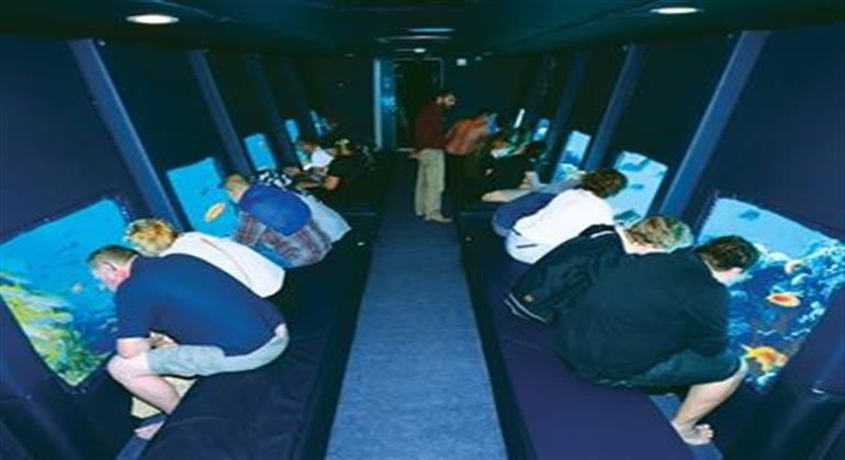 Your submarine ride will descend to a depth of up to (4 meters), where you can see different kinds of coral reefs and colored fish. It is not necessary to be a scuba diver! In fact, you don't even have to get wet to see the beauty of this underwater world